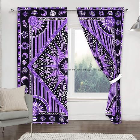 Amazon Com Popular Handicrafts Indian Burning Sun Hippie Mandala Window Curtains Gypsy Tye Dye Bohemian Sun Moon Beautiful Drapery Bedroom Living Room Balcony Valance Panels Golden Kitchen Dining - Various patterns such as celestial, sleeping & dreaming sun, perfect for any bedding needs including dorm rooms, living rooms.